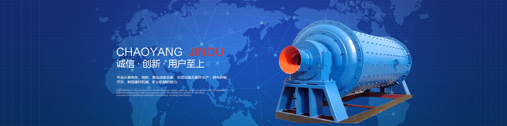 朝陽金都重型設備制造有限公司,位于遼寧西部,緊鄰101國道,專業從事有色、地鐵、黃金成套設備、水泥設備及配件生產,具有研制、開發、制造建材機械、礦山機械的能力。
